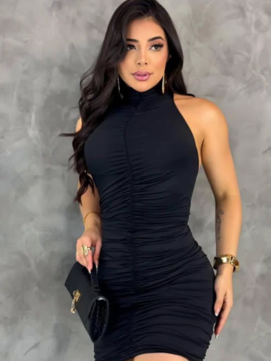 Vestido Tubinho Preto Noite com Franzido Frontal