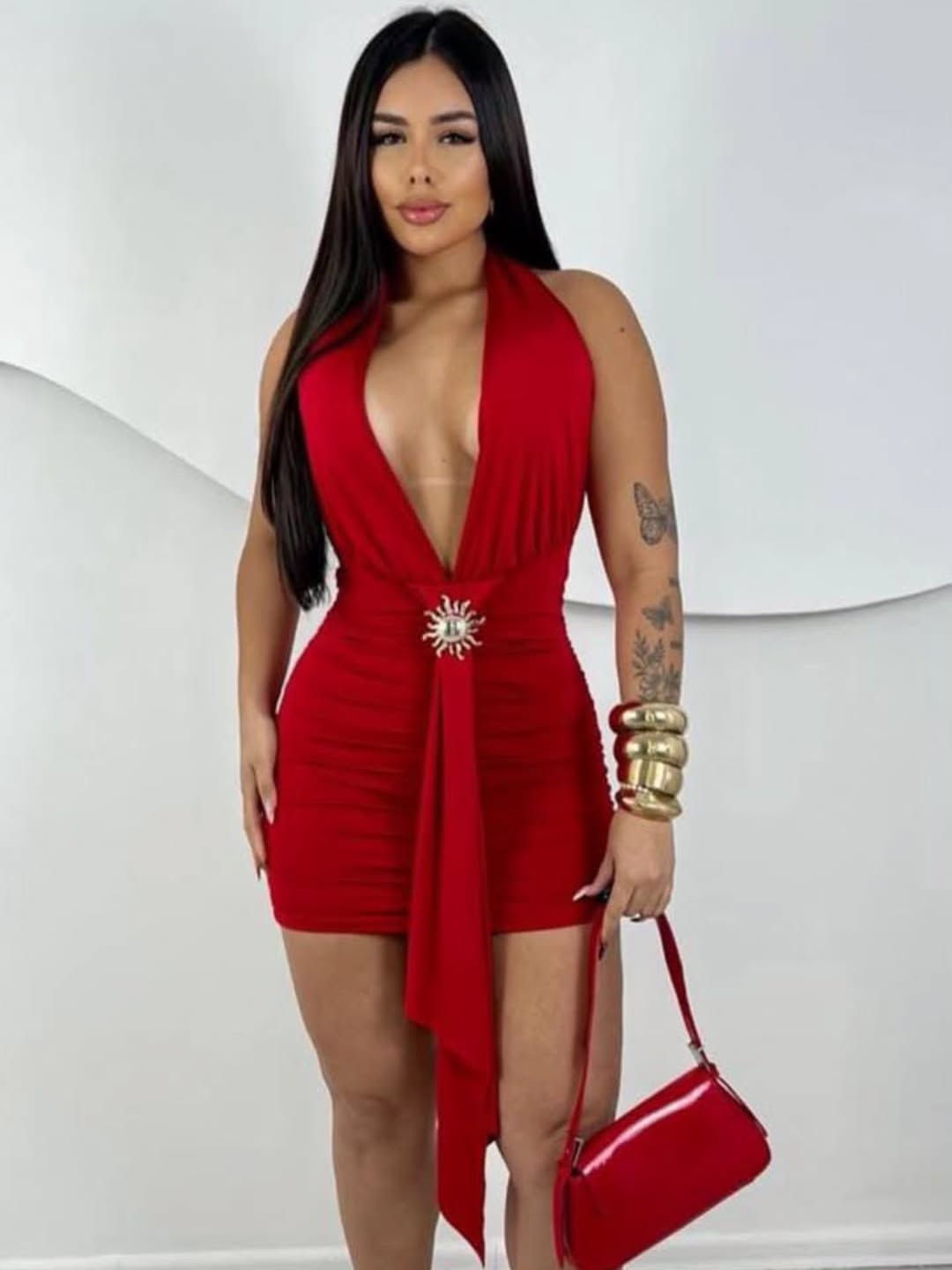 Vestido Sexy Red Party - Ajuste Perfeito com Drapeado